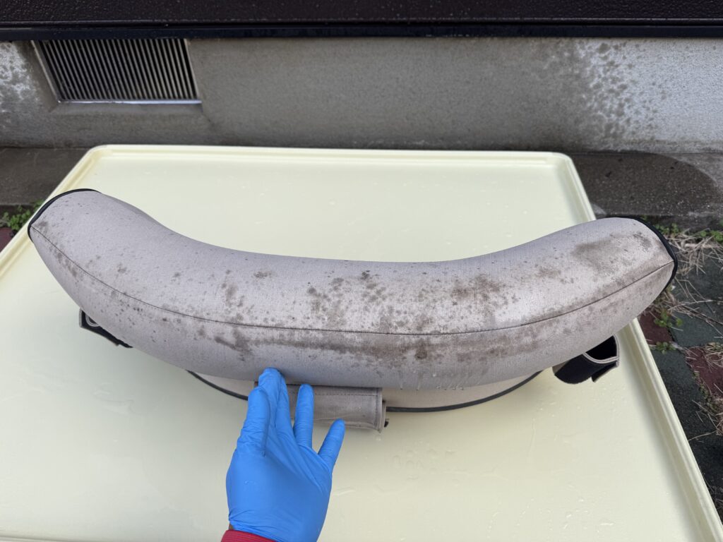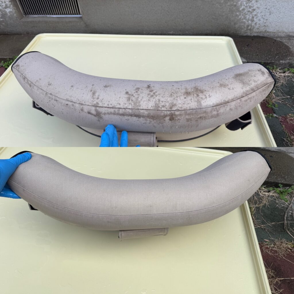 湿気が多い船内で特に気になるのが「カビ」。今回はSR320の船内ヘッドレストに発生していた深刻なカビ汚れの除去施工を行いました。