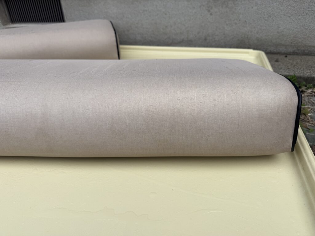 特に中央部から両端にかけては、目視でもはっきりとわかるレベルで、繊維の奥まで根を張ったカビが発生しており、一般的な水洗いや中性洗剤では歯が立たない状態です。
