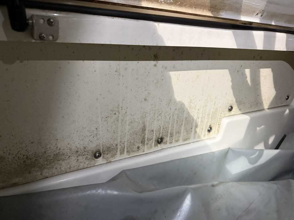 全体的に水垢やカビの浸食が進行しておりましたが、素材に配慮しつつ専用ケミカルと道具を使い分けながら丁寧に作業させていただきました。